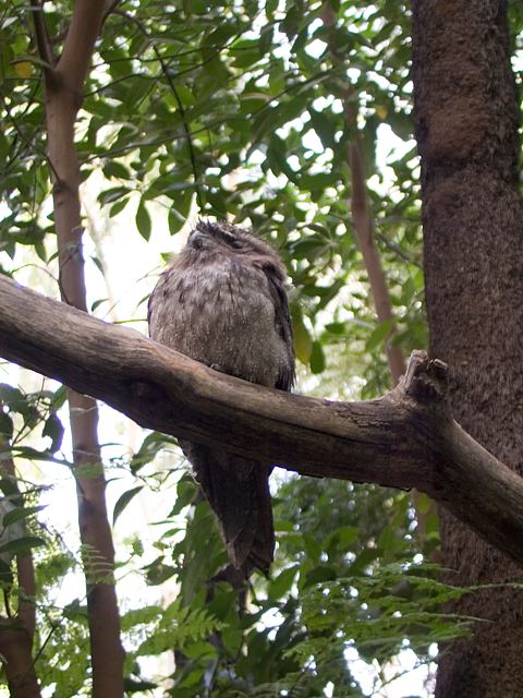 Сначала я пошла в тропический лес – что-то вроде большого зимнего сада, где растут эвкалипты и папоротники, журчат ручьи, ползают змеи и ящурки и щебечут птицы. И везде – полезная информация по теме. Правда, углубиться в лес я не успела: галерею закрыли из-за штормового предупреждения. Но перед этим я увидела птичку под названием лягушкорот. Это родственники козодоев, живут в Австралии, днем спят, а ночью ловят насекомых и мышей.