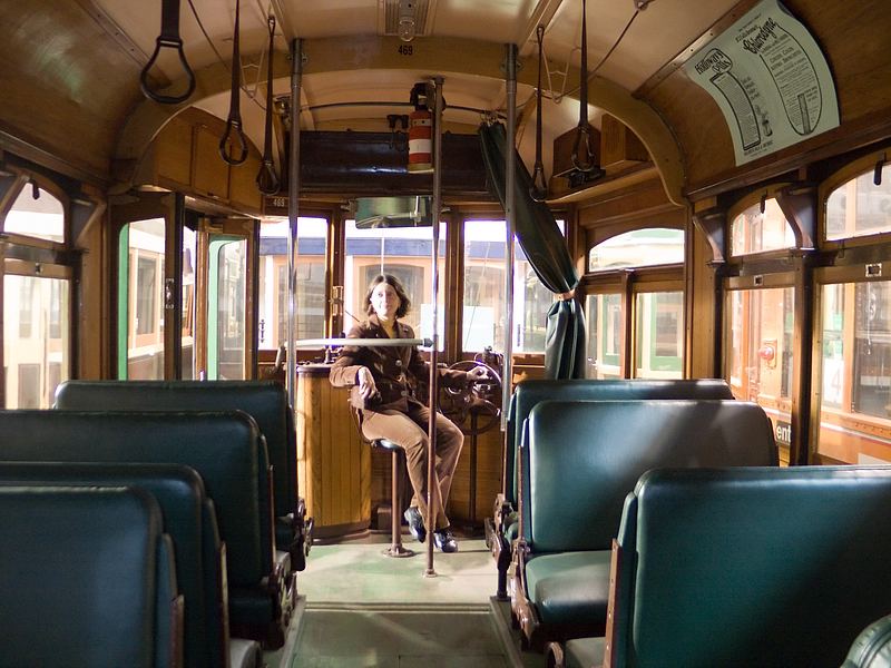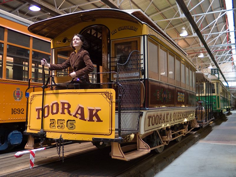 До сих пор мельбурнские трамваи ассоциировались у меня исключительно с желто-зелеными вагончиками W-класса, но, оказывается, какая фантастическая красота бегала тут по рельсам в начале века! У меня захватило дух от первого же увиденного экземпляра. У этого так называемого «летнего» вагона (V-214, 1906 г.) нет дверей, а внутри – лавки во всю ширину, без прохода.