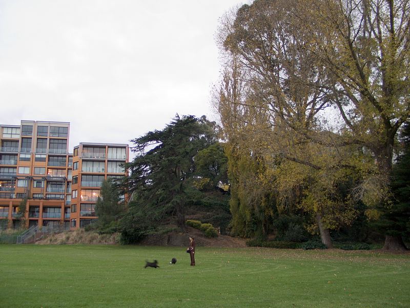 За депо находится приятный парк с рекой, в котором гуляют с собаками.