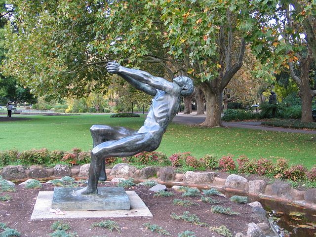 Маршрут мой начался с Flagstaff Gardens – небольшого садика в северо-западном углу Сити. Ничего особенного в нем не обнаружилось – лужайки и лавочки с отдыхающим народом, осенние деревья да пара мемориалов. Была, правда, статуя юноши, садистски дразнящего пантеру, но против солнца снять ее не получилось.